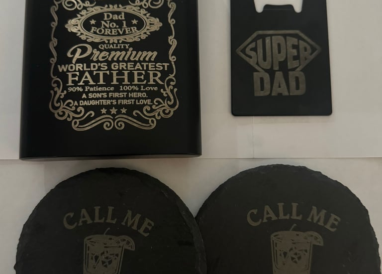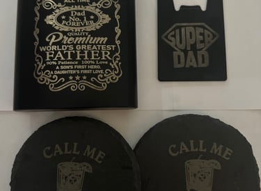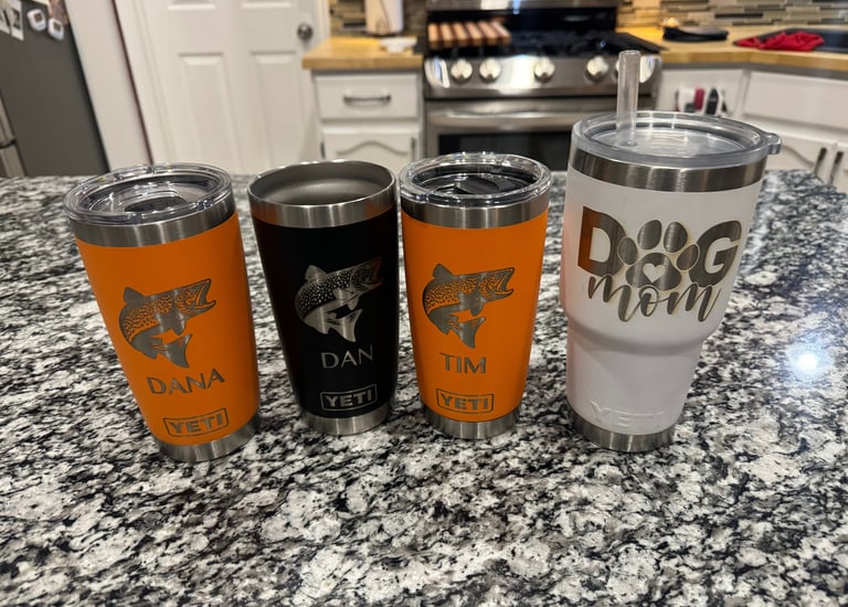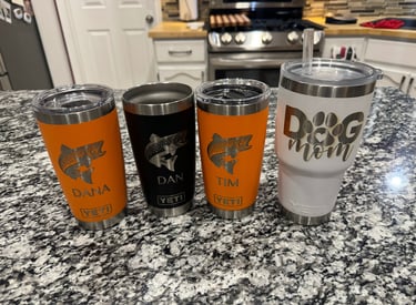 Specializing in laser engravings on wood, tumblers, plastic, slate, and glass.